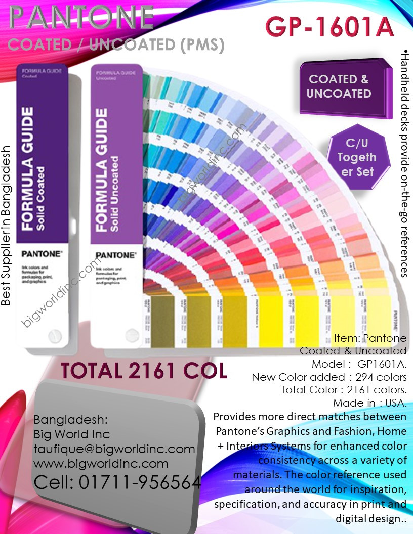 Big World Inc . Always provide the latest Pantone Coated & Un Coated Guide books from ready stock.